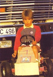Schon mit 7 Jahren schien Tom klar zu sein, wo er hin will. Sein selbst dekorierter Kettcar, mit dem er den elterlichen Garten unsicher macht, trägt selbstverständlich die Startnummer 1.